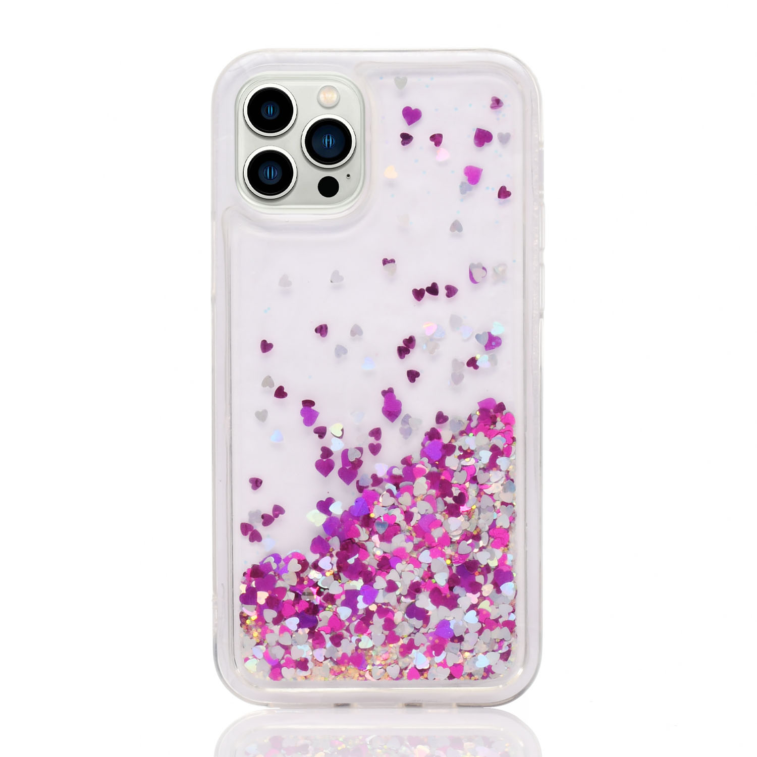 Maskica za iPhone 12 Pro "Rain Of Glitter" - srce - Ljubičasta #2