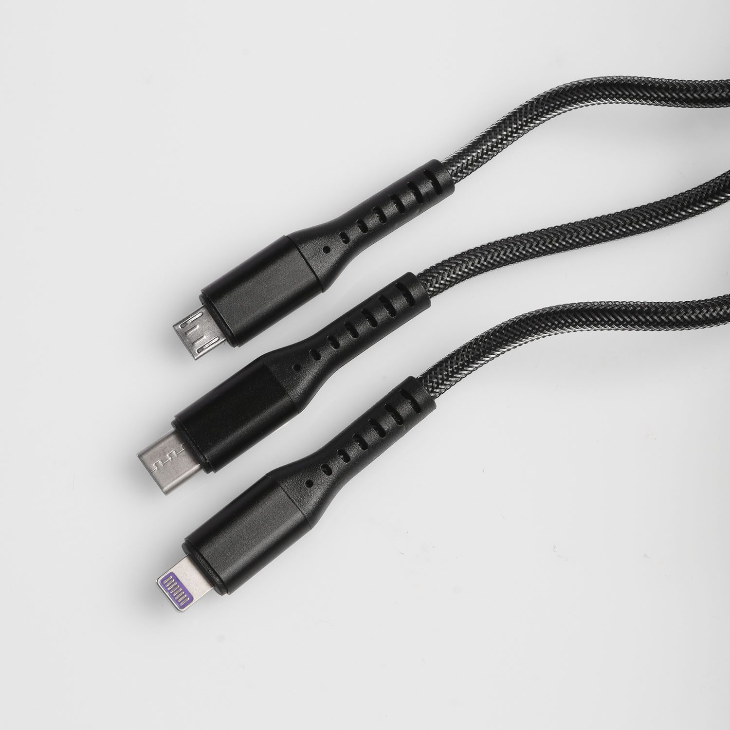 Kabel za punjenje i sinkronizaciju podataka s tri priključka USB Type-C, Micro-USB, Lightning. s tri različita priključka za punjenje različitih uređaja – type-C, micro USB i lightning. Istovremeno punite nove i starije Androide, kao bilo koji iPhone, power bank, tablet i druge uređaje.